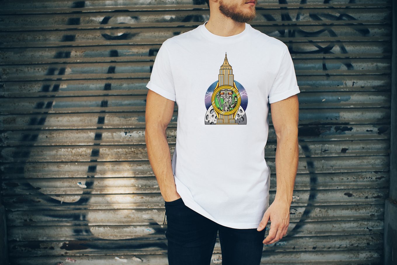 Legendární ladičkové hodinky na své ilustraci doplnil nejenom pohledem na do vesmíru a na Měsíc, ale také impozantní budovou Empire State Building. Právě v ní totiž hodinářská značka Bulova, jejíž historie se začala psát v New Yorku roku 1875, sídlí a nachází se v ní také firemní muzeum. Věhlasný mrakodrap zároveň slouží jako velmi důležitý vysílací uzel s anténami pro televizní a radiové vysílání – což je odkaz na první reklamu v rozhlasu značky z roku 1926 a vůbec první televizní reklamu na světě odvysílanou v roce 1941.