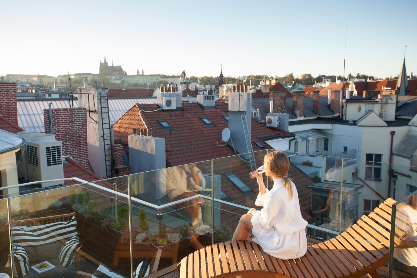 Silným lákadlem The M Spa je také možnost privátního pobytu ve střešní vířivce s panoramatickým výhledem na historické střechy Starého Města a Pražský hrad. Exkluzivní zážitek je jako stvořený pro romantické páry, ale i pro další milovníky unikátních relaxačních zážitků. Toto intimní prostředí slibuje naprosté soukromí, v horké bublající vodě vysoko nad rušnými ulicemi historického centra Prahy.