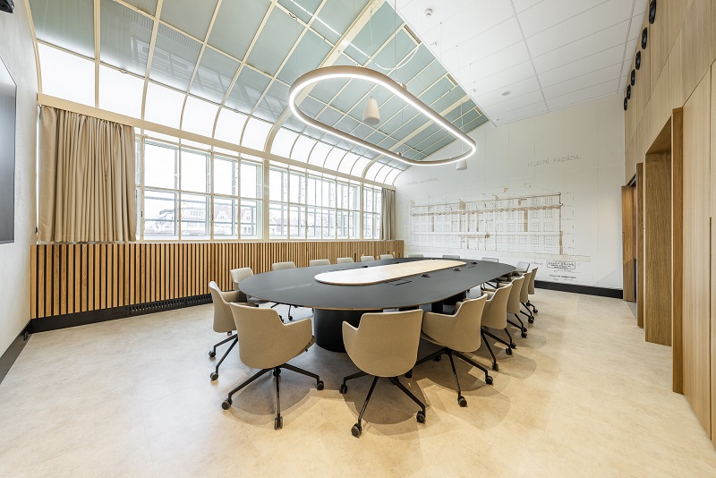 Novou zasedací místnost navrhlo studio JKH Architects s cílem vytvořit reprezentativní a funkční prostředí pro jednání až osmnácti osob. Dominantou prostoru je oválný stůl, kolem něhož bylo potřeba zvolit sezení splňující vysoké nároky na ergonomii, komfort i dlouhodobou odolnost. „Hledali jsme křeslo, které bude ergonomické a zároveň reprezentativní. Spolupráci s LD Seating máme dlouhodobě nastavenou a vždy nám profesionálně poradí s výběrem kvalitního sezení,“ vysvětlují architektky Jana Klečková Holečková a Jana Wisingerová ze studia JKH Architects.