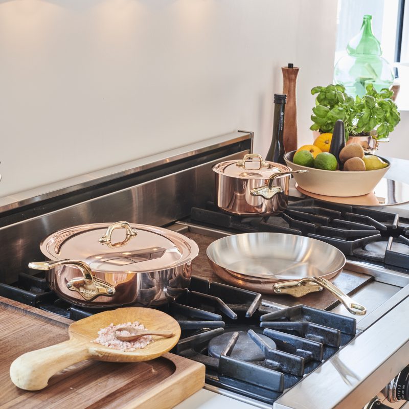 Přilnavé varianty zase zahrnují nerez, litinu, uhlíkovou ocel a měď. Právě tyto materiály ocení každý, kdo očekává práci při vyšších teplotách, výrazné opečení a poctivý výpek. Jsou mimořádně odolné, snesou i kovové náčiní a při správném používání vydrží v kuchyni i roky. Nerezová ocel je skvělou volbou zejména pro dynamickou práci s teplotou. Typickým příkladem jsou modely Zwilling PRO s technologií SIGMA Clad nebo Mauviel 1830 M’Cook, s uplatněním i v profesionální kuchyni.
